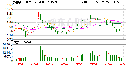 | 交易日期 | 证券商稼 | 证券代码 | 成交价(元) 成交金额(万元) 成交量(*) 买入营业部 | | | 卖出营业部 是否为专场 | | --- | --- | --- | --- | --- | --- | --- | | 026-02-02 | 安凯微 | 688620 | 2145.4 9.49 | 226.07 | 是最高清理费 | 委员会委员会 Ka | 2月2日,安凯微大宗交易成交226.07万股,成交额2145.4万元,占当日总成交额的18.08%,成交价9.49 元,较市场收盘价11.44元折价17.05%。 ...