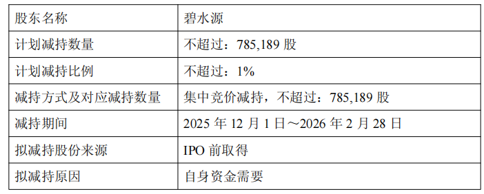 Core Viewpoint - Beijing Bihaiyuan Technology Co., Ltd. plans to reduce its stake in Bihang Wulian (688671.SH) due to funding needs, intending to sell up to 785,189 shares, representing 1% of the total share capital, between December 1, 2025, and February 28, 2026 [1][2]. Group 1 - The planned reduction in shares is through centralized bidding, with a maximum of 785,189 shares to be sold [2]. - As of the announcement date, Bihaiyuan holds 8,814,811 shares in Bihang Wulian, accounting for 11.23% of the total shares [2]. - The shares to be sold were acquired before the company's IPO and have been tradable since August 9, 2024 [2]. Group 2 - Bihang Wulian went public on August 9, 2023, issuing 19.63 million shares at a price of 36.12 yuan per share, currently trading below the IPO price [2]. - The total amount raised from the IPO was 709.0356 million yuan, with a net amount of 623.4436 million yuan after deducting issuance costs [3]. - The actual net fundraising exceeded the original target by 210.834 million yuan, which was initially set at 412.6096 million yuan for various projects [3].