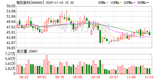 海优新材跌4.27% 2021年上市2募资共21.6亿元