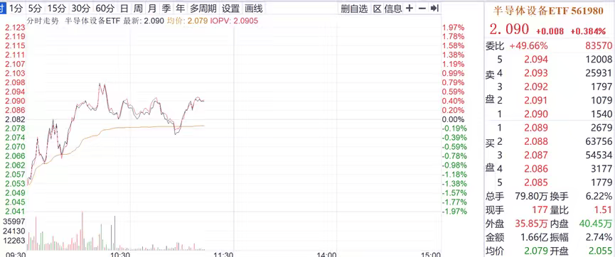 沪指勇夺4000点!半导体设备ETF(561980)涨0.38%、近20日累计吸金12.83亿