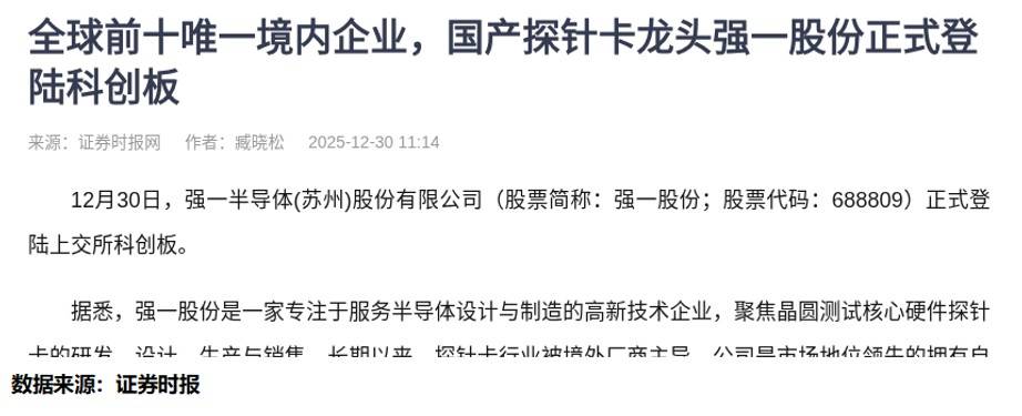 一、高增长股的"纠结局":看走势不如看"行为" 我有个同事之前买了只新能源股,业绩每年涨40%,结果涨了三倍后开始调整——K线一会儿反弹一会儿跌,他天天问我"这是洗盘还是做头?"其实不 是他笨,是他没看到资金的真实交易行为。 12月30日,做半导体探针卡的强一股份在科创板敲钟了——就是那种芯片设计、制造时用来测良率的核心硬件,以前这行基本是境外厂商的"天下",现 在这家国产公司冲进了全球前六(2024年全球第六,2023年第九),还是近年唯一进前十的中国企业。更亮眼的是业绩:2022到2024年营收从2.54亿蹦 到6.41亿,每年差不多涨60%;2025年预计营收要到9.5-10.5亿,净利润也得涨50%以上。 但我猜很多人跟我一样,看到这种高增长公司,第一反应不是"它好不好",而是"买了之后要是调整,我怎么知道是洗盘还是要跌?"毕竟我之前踩过坑 ——去年买了只业绩翻倍的科技股,高位调整时以为是"蓄力",结果套了大半年。直到后来接触到一些交易数据,才明白:基本面好是地基,但股价趋 势,得看资金的"真实意图"。 重点来了:如果一只股票调整时,出现"强补"(主导动能里同一根柱子"上红下蓝"),同时机构库存活跃, ...