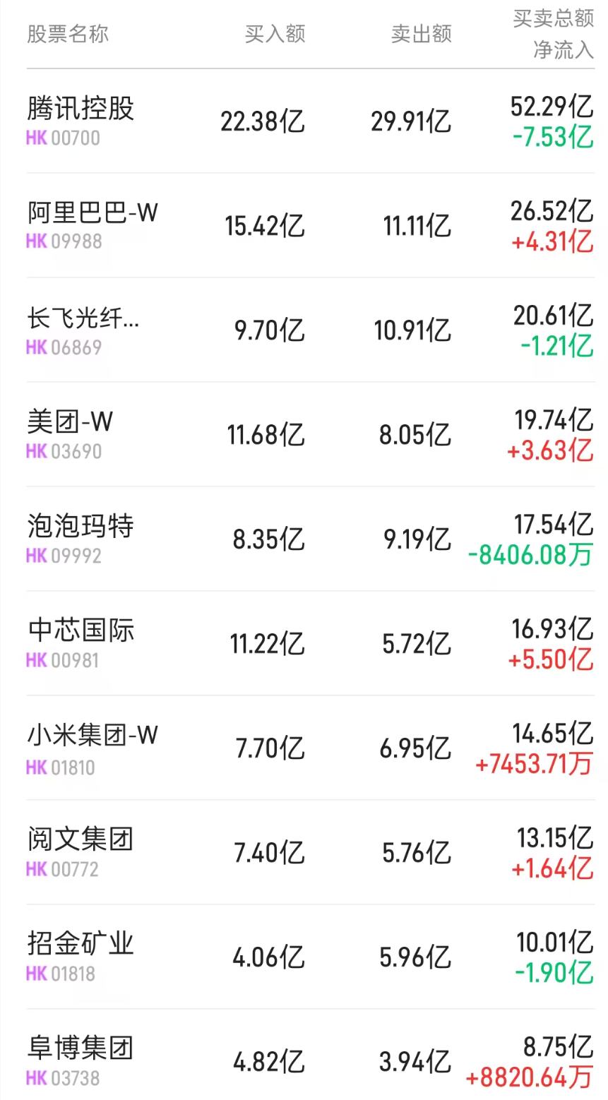 格隆汇2月9日|南下资金今日净卖出港股18.87亿港元。其中: | 南下资金净卖出港股18.87亿港元(2026-2-9) | | --- | | | 沪股通 | | | 深股通 | | | | | --- | --- | --- | --- | --- | --- | --- | --- | | 名称 | 涨跌幅 | 净买入额(亿) | 成交割 | 名称 | 涨跌幅 | 净买入额(亿) | 成交额 | | 腾讯控股 | 2.3% | 9.04 | 46.81 亿 | 腾讯控股 | 2.3% | 8.96 | 34.90 Z | | 阿里巴巴-W | 1.9% | -1.00 | 37.40亿 | 當高長金 | 1.7% | -20.40 | 20.51 Z | | 益高点象 | 1.7% | -25.15 | 25.31 亿 | 阿里巴-W | 1.9% | 1.51 | 16.11 亿 | | 泡泡玛特 | 5.8% | 1.53 | 21.43 Z | 快手-W | -2.7% | -1.71 | 15.00 Z | | 快手-W | -2.7% | -3.98 | 18.47 亿 | 泡泡玛特 | 5 ...