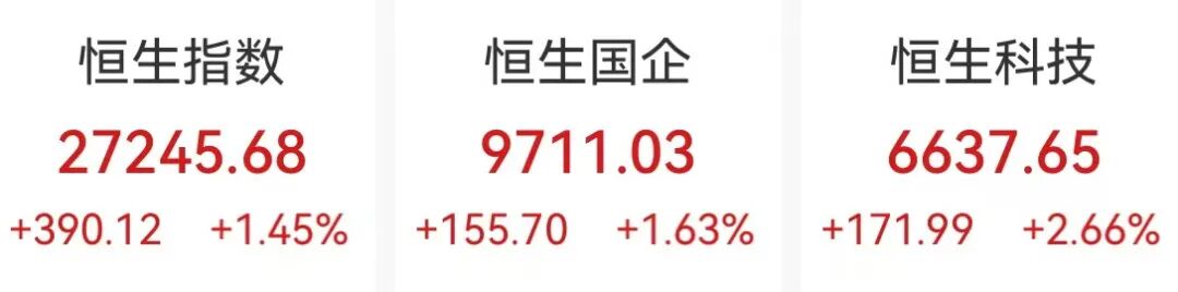 恒生指数涨1.45% 恒生科技指数涨2.66% 科网股、黄金股普涨 半导体板块强势 中芯国际涨超9%