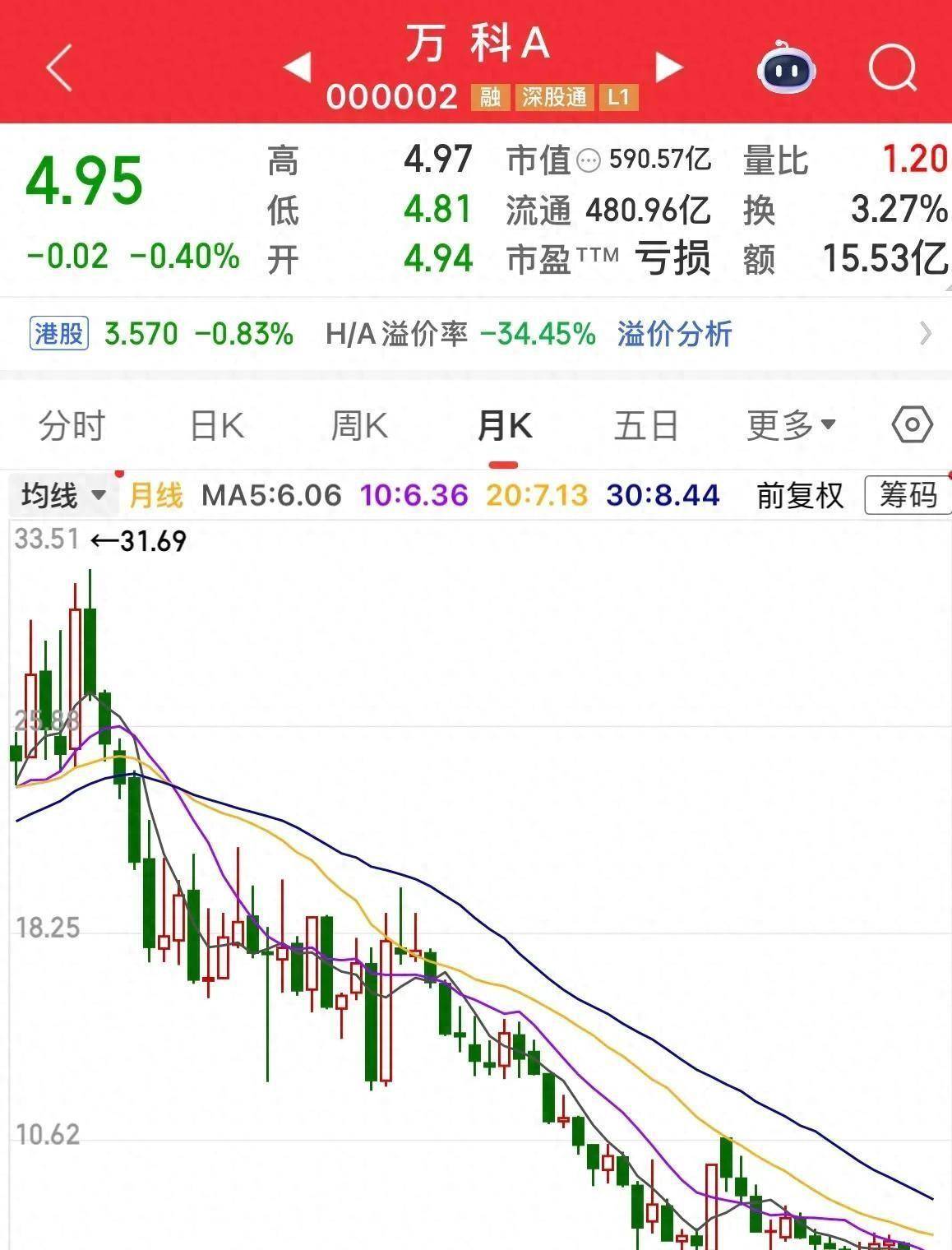 谁曾料到它会跌至5元以下!股价创18年新低,重仓股民亏损惨重