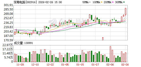 格隆汇2月26日丨深南电路(002916.SZ)涨1.67%,报268.170元,股价创历史新高,总市值1826.68亿元。 ...