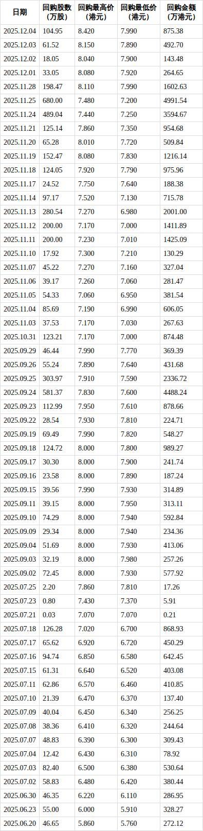 该信息由智通财经网提供 智通财经APP讯,中集集团(02039)发布公告,于2025年12月4日,该公司斥资875.38万港元回购104.95万 股。 ...