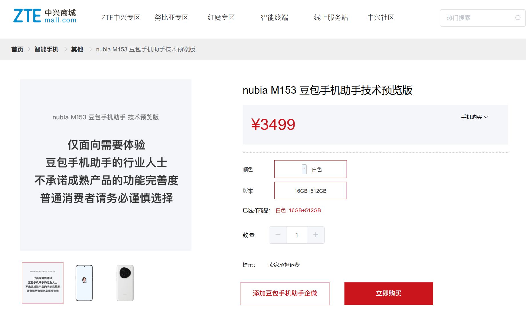每经编辑|张锦河 12月2日,根据中兴商城显示,目前首款"豆包助手"手机已显示"售罄",闲鱼上该款手机二手售价4200元到4999元之间,比官方售价高出700元到1500元上 下。 nubia M153是目前首款搭载豆包手机助手技术的手机终端。其搭载高通骁龙8至尊版处理器,支持无线充电、NFC等功能。 相比普通手机搭载的AI助手,仅能执行少量步骤的固定执行动作,豆包手机助手的AI操作手机功能可根据用户指令在多款应用间自动跳转,实现比价下 单、批量下载文件、多软件物流进度一键查询等任务。 在隐私安全方面,豆包方面称,"豆包手机助手把隐私保护作为前提而非附加项。"据《豆包手机助手白皮书》,⾖包⼿机助⼿遵循授权同意、最⼩必要、⽤ 户可控原则设计,明确从技术架构上确保不会使⽤⽤户敏感数据训练模型。 每日经济新闻综合第一财经、九派财经 免责声明:本文内容与数据仅供参考,不构成投资建议,使用前请核实。据此操作,风险自担。 "豆包助手"手机由中兴通讯和字节跳动共同开发,其中豆包主导AI手机助手的产品定义与体验,中兴通讯旗下努比亚主导硬件研发设计以及生产制造。 据媒体报道,对于备货和销量数据,努比亚方面对记者表示,"目前暂时 ...