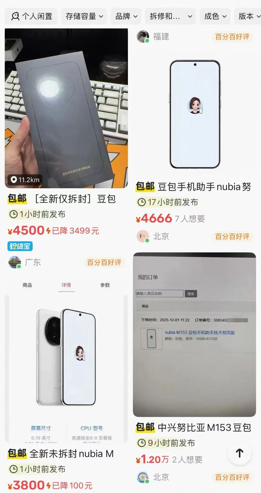来源:@消费者报道微博 12月1日,字节跳动旗下AI助手豆包和中兴通讯先后宣布,搭载豆包手机助手技术预览版的工程样机 nubia(努比亚) M153少量发售。目前该机型在中兴商城售卖,仅有16GB+512GB一款配置,售价为 3499元。 【#豆包手机被炒至7999元#】#豆包手机购买资格被炒至百元# 蓝鲸记者在中兴商城官网查询发现,目前该手机仅支持通过"F码"购买。用户需先进入预约页面,填写 个人相关信息以申请F码,审核通过后方可获得购买资格。 记者了解到,当前"F码"放量有限,仅少数早期预约用户已通过审核,获得购买资格并成功下单。部分 首批下单用户表示已收到手机。 在二手交易平台,因获取渠道稀缺,"F码"转让价格已被炒至百元左右。值得注意的是,已流入市场的 首批实机在二手交易中出现明显溢价,有卖家标价7999元,较原价翻了两倍多。 来源:@消费者报道微博 【#豆包手机被炒至7999元#】#豆包手机购买资格被炒至百元# 12月1日,字节跳动旗下AI助手豆包和中兴通讯先后宣布,搭载豆包手机助手技术预览版的工程样机 nubia(努比亚) M153少量发售。目前该机型在中兴商城售卖,仅有16GB+512GB一款配 ...