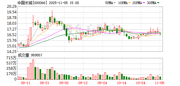 10月30日,中国长城盘中上涨2.08%,截至10:41,报17.18元/股,成交11.90亿元,换手率2.18%,总市 值554.19亿元。 分红方面,中国长城A股上市后累计派现18.55亿元。近三年,累计派现2258.06万元。 资金流向方面,主力资金净流入6486.06万元,特大单买入1.17亿元,占比9.85%,卖出9719.59万元,占 比8.17%;大单买入2.76亿元,占比23.22%,卖出2.32亿元,占比19.45%。 中国长城今年以来股价涨17.91%,近5个交易日涨5.01%,近20日跌0.92%,近60日涨14.53%。 机构持仓方面,截止2025年9月30日,中国长城十大流通股东中,香港中央结算有限公司位居第二大流 通股东,持股4300.53万股,相比上期增加467.07万股。南方中证500ETF(510500)位居第三大流通股 东,持股2815.87万股,相比上期减少64.03万股。国泰中证军工ETF(512660)位居第五大流通股东, 持股1883.24万股,相比上期减少360.87万股。广发中证军工ETF(512680)位居第九大流通股东,持股 1040.60万股,相比上期增加 ...