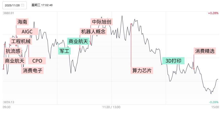一、【早盘盘面回顾】 消息面上,谷歌于近期正式发布新一代多模态AI模型Gemini 3和图像生成与编辑模型Nano Banana Pro,二者表现优异。同时,谷歌在TPU互联中引入光交换 OCS技术,构建由多个机柜组成的TPU超节点。Cignal AI预计到2029年,光交换OCS的总潜在市场规模(TAM)将超过16亿美元。伴随着谷歌大模型的进一 步升级,OCS光交换相关产业链有望持续受益。 抗流感概念持续活跃,粤万年青、华人健康、海南海药、人民同泰、广济药业、北大医药涨停,金迪克、康芝药业、新华制药等涨幅居前。 智通财经11月26日讯,市场早盘震荡反弹,深成指涨超1%,创业板指涨近3%。沪深两市半日成交额1.14万亿,较上个交易日缩量390亿。盘面上热点快速轮 动,全市场超2800只个股上涨。从板块来看,抗流感概念股爆发,广济药业3连板,北大医药2连板。算力硬件概念快速拉升,权重中际旭创涨近14%创历史 新高,特发信息4连板,新易盛涨超10%。AI应用概念延续强势,石基信息3天2板。下跌方面,军工板块走弱,江龙船艇跌近10%。截至收盘,沪指涨 0.14%,深成指涨1.61%,创业板指涨2.76%。 个股来看 ...