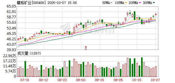 Core Viewpoint - Cangge Mining's stock price has shown significant growth this year, with a year-to-date increase of 122.06%, reflecting strong performance in the potassium and lithium production sectors [1][2]. Financial Performance - For the period from January to September 2025, Cangge Mining achieved a revenue of 2.401 billion yuan, representing a year-on-year growth of 3.35% [2]. - The net profit attributable to shareholders for the same period was 2.751 billion yuan, marking a substantial year-on-year increase of 47.26% [2]. Stock Market Activity - As of October 28, Cangge Mining's stock price was 59.36 yuan per share, with a market capitalization of 93.209 billion yuan [1]. - The stock experienced a decline of 2.01% during the trading session, with a trading volume of 243 million yuan and a turnover rate of 0.26% [1]. - The stock has seen a net inflow of 723,900 yuan from main funds, with significant buying and selling activity from large orders [1]. Shareholder Information - As of September 30, 2025, the number of shareholders increased by 25.24% to 36,800, while the average circulating shares per person decreased by 20.15% to 42,667 shares [2]. - Cangge Mining has distributed a total of 9.629 billion yuan in dividends since its A-share listing, with 5.998 billion yuan distributed over the past three years [3]. Institutional Holdings - As of September 30, 2025, Hong Kong Central Clearing Limited was the sixth-largest circulating shareholder, holding 27.706 million shares, a decrease of 3.4507 million shares from the previous period [3]. - Shenwan Hongyuan Securities Co., Ltd. and Huatai-PB CSI 300 ETF were also among the top ten circulating shareholders, with reductions in their holdings [3].