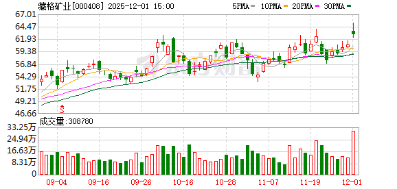 据天眼查APP显示,藏格矿业股份有限公司成立于1996年06月25日,注册资本157022.5745万人民币。 (数据宝) 数据宝统计,截至14:53,藏格矿业成交额19.31亿元,创上市以来新高。最新股价上涨3.93%,换手率 1.94%。上一交易日该股全天成交额为7.32亿元。 (文章来源:证券时报网) ...