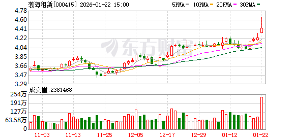 渤海租赁成交额创2024年12月11日以来新高