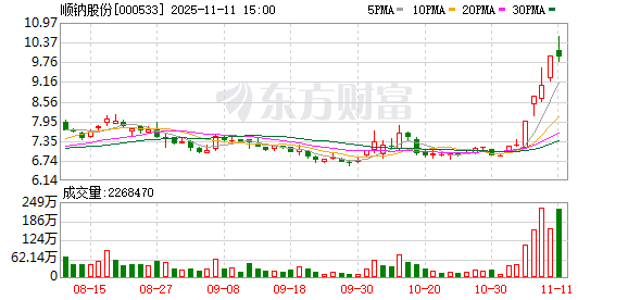 顺钠股份再度涨停,7个交易日内录得4个涨停,累计涨幅为43.63%,累计换手率为170.22%。截至 10:01,该股今日成交量1.05亿股,成交金额10.43亿元,换手率15.39%。最新A股总市值达71.64亿元, A股流通市值71.02亿元。 据天眼查APP显示,广东顺钠电气股份有限公司成立于1992年10月28日,注册资本69081.6万人民币。 (数据宝) 近日该股表现 | 日期 | 当日涨跌幅(%) | 换手率(%) | 主力资金净流入(万元) | | --- | --- | --- | --- | | 2025.11.12 | -4.84 | 25.54 | -7784.18 | | 2025.11.11 | -0.30 | 33.12 | -9054.04 | | 2025.11.10 | 9.96 | 23.41 | 24263.95 | | 2025.11.07 | 3.55 | 33.70 | -5234.29 | | 2025.11.06 | 9.95 | 23.06 | 8387.92 | | 2025.11.05 | 9.97 | 15.99 | 28608.06 | | 2025 ...