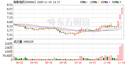 海南海药:股票连续2日涨幅偏离值累计超20%,提示风险