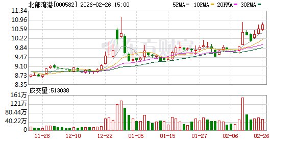 分红方面,北部湾港A股上市后累计派现30.34亿元。近三年,累计派现13.96亿元。 来源:新浪证券-红岸工作室 机构持仓方面,截止2025年9月30日,北部湾港十大流通股东中,南方中证500ETF(510500)位居第七 大流通股东,持股1349.35万股,相比上期减少29.64万股。香港中央结算有限公司位居第八大流通股 东,持股1217.43万股,相比上期增加300.90万股。 2月26日,北部湾港盘中上涨2.08%,截至09:43,报10.82元/股,成交1.11亿元,换手率0.51%,总市值 260.87亿元。 北部湾港所属申万行业为:交通运输-航运港口-港口。所属概念板块包括:RCEP概念、天然气、双百 企业、一带一路、港口运输等。 截至9月30日,北部湾港股东户数5.94万,较上期增加42.47%;人均流通股31217股,较上期减少 29.81%。2025年1月-9月,北部湾港实现营业收入55.35亿元,同比增长12.92%;归母净利润7.89亿元, 同比减少13.89%。 资金流向方面,主力资金净流出719.69万元,特大单买入107.36万元,占比0.97%,卖出250.73万元,占 比2.2 ...