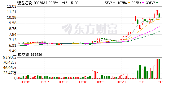 融资融券数据显示,该股最新(11月12日)两融余额为1.37亿元,其中,融资余额为1.37亿元,融券余 额为0.23万元。近5日融资余额合计减少3105.63万元,降幅为18.44%,融券余额合计增加318.00元,增 幅16.14%。(数据宝) 德龙汇能11月13日交易公开信息 | 买/ | 会员营业部名称 | 买入金额(万 | 卖出金额(万 | | --- | --- | --- | --- | | 卖 | | 元) | 元) | | 买一 | 光大证券股份有限公司丹阳丹金路证券营业部 | 3291.52 | 0.62 | | 买二 | 长城证券股份有限公司北京小营路证券营业部 | 2336.64 | 0.00 | | 买三 | 长江证券股份有限公司乌鲁木齐光明路证券营业部 | 2238.15 | 0.10 | | 买四 | 中信证券股份有限公司杭州凤起路证券营业部 | 2060.62 | 3.17 | | 买五 | 机构专用 | 1991.26 | 4751.46 | | 卖一 | 机构专用 | 1991.26 | 4751.46 | | 卖二 | 国盛证券有限责任公司上海浦东新区世纪大道证券营业 | ...