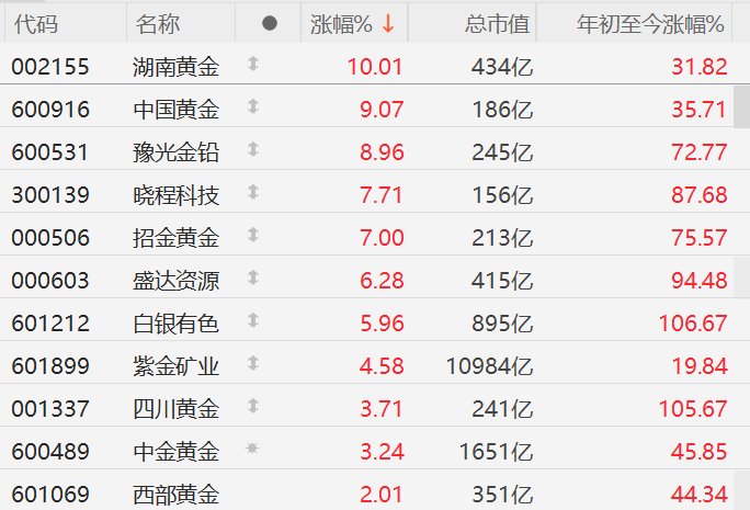 A股异动丨黄金股继续强势,湖南黄金、豫光金铅等一众股创历史新高