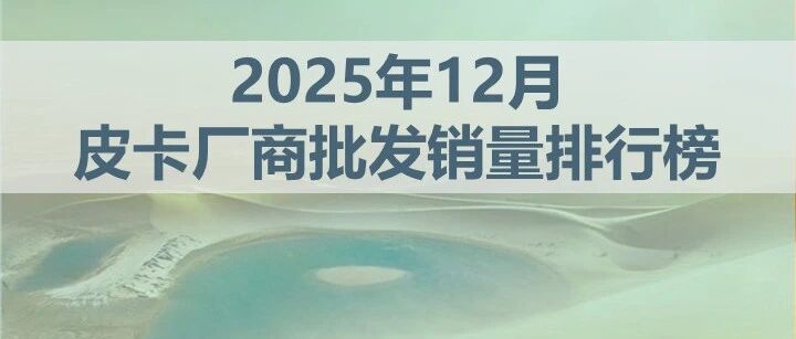 【月度排名】2025年12月皮卡厂商批发销量排名快报