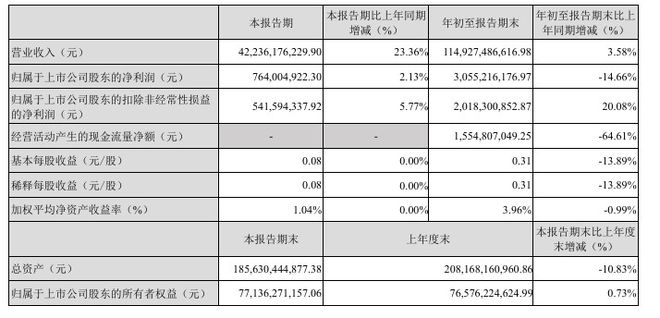 Core Viewpoint - Changan Automobile's third-quarter financial report highlights the company's growth in new energy vehicle sales and overseas markets, while facing significant pressure on profitability due to reduced government subsidies and increased sales expenses [1][2][8] Financial Performance - In Q3, Changan's revenue reached 42.236 billion yuan, a year-on-year increase of 23.36%, while total revenue for the first three quarters was 114.927 billion yuan, up 3.58% [2][3] - The net profit attributable to shareholders for Q3 was 764 million yuan, a 2.13% increase year-on-year, but the net profit for the first three quarters decreased by 14.66% to 3.055 billion yuan [2][3] - The non-recurring net profit for Q3 was 542 million yuan, up 5.77% year-on-year, with a cumulative increase of 20.08% for the first three quarters [2][3] - Government subsidies significantly decreased, with a 67.52% drop in the first three quarters, impacting profit margins [3][4] Sales Performance - Changan's total sales in Q3 reached 711,100 units, a 26.8% year-on-year increase, with cumulative sales for the first three quarters at 2.0661 million units, up 8.46% [7] - New energy vehicle sales in Q3 surged by 81.22% to 272,500 units, with a total of 724,000 units sold in the first three quarters, reflecting a 59.72% increase [7] - Overseas exports in Q3 were approximately 166,000 units, a 96.3% year-on-year increase, with total exports for the first three quarters at 465,000 units, up 10.7% [7] Strategic Insights - Changan's investment in technology is beginning to yield results, with gross margins improving to nearly 15% and showing a positive trend [5] - The company is focusing on transforming into a "smart low-carbon travel technology company," with plans to explore advanced fields such as humanoid robots and flying cars [8] - Despite strong sales in new energy vehicles, challenges remain in achieving high-end market penetration, as seen with the sales performance of specific models [6][7]