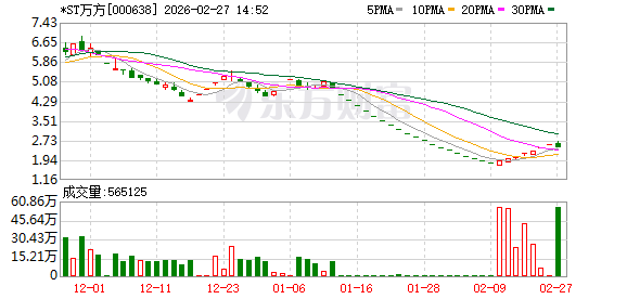 【导读】*ST万方上演"天地板",此前7连板 此外,*ST万方表示,其公司2025年度审计报告仍存在被出具保留意见审计报告的风险。若公司2025年 度被出具保留意见审计报告,根据《深圳证券交易所股票上市规则》,公司股票将因触及财务类退市情 形被终止上市。 (文章来源:中国基金报) 中国基金报记者晨曦 7连板牛股,上演"天地板"! 2月27日,*ST万方盘初涨停,报2.69元/股。随后直线跳水,一度触及跌停,上演"天地板"行情。午 后,*ST万方封住跌停板,报2.43元/股。截至发稿,*ST万方仍保持跌停状态,成交额为1.2亿元。 近期,*ST万方股价持续走高,曾连续7日涨停。 2月26日晚间,*ST万方发布风险提示称,公司股票自2026年2月10日起连续多个交易日涨停,剔除大盘 整体因素后,公司股价实际波动幅度较大,存在市场情绪过热、非理性炒作的风险。 同时,*ST万方已在近期多次披露股票交易异常波动公告、股票可能被终止上市的风险提示公告及立案 调查进展暨风险提示公告。*ST万方提醒广大投资者理性投资,审慎决策,避免二级市场交易面临较大 投资风险。 退市风险方面,*ST万方披露的《2025年度业绩预告》显示, ...
