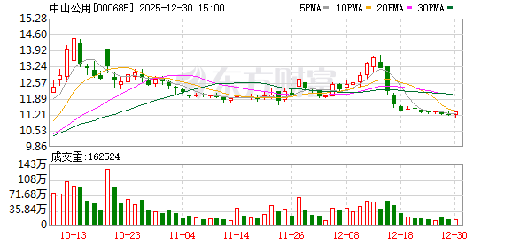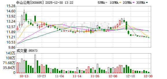 融资融券数据显示,该股最新(12月29日)两融余额为7.08亿元,其中,融资余额为7.06亿元,本期筹 码集中以来融资余额合计减少3953.54万元,降幅为5.31%。 公司发布的三季报数据显示,前三季公司共实现营业收入31.43亿元,同比下降7.04%,实现净利润 12.11亿元,同比增长18.11%,基本每股收益为0.8300元,加权平均净资产收益率6.90%。(数据宝) (文章来源:证券时报网) 中山公用12月30日披露,截至12月20日公司股东户数为46676户,较上期(12月10日)减少4495户,环 比降幅为8.78%。 证券时报·数据宝统计,截至发稿,中山公用最新股价为11.20元,上涨0.09%,本期筹码集中以来股价 累计下跌12.91%。具体到各交易日,5次上涨,9次下跌。 ...