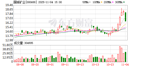 国城矿业股份有限公司(以下简称"公司")股票(证券简称:国城矿业,证券代码:000688)连续3个 交易日(2025年10月29日、10月30日、10月31日)收盘价格涨幅偏离值累计超过20%,根据深圳证券交 易所的有关规定,属于股票交易异常波动的情况。 本公司及董事会全体成员保证信息披露内容的真实、准确和完整,没有虚假记载、误导性陈述或重大遗 漏。 一、股票交易异常波动的情况介绍 二、公司关注并核实情况的说明 针对公司股票交易异常波动,公司对有关事项进行了核查,现就有关核实情况说明如下: 1、经自查,公司不存在违反信息公平披露的情形。 2、公司郑重提醒广大投资者:《中国证券报》《证券时报》《上海证券报》《证券日报》及巨潮资讯 网(http://www.cninfo.com.cn)为公司选定的信息披露媒体,公司所有信息均以在上述指定媒体刊登的 信息为准,请广大投资者理性投资,注意风险。 3、公司未发现近期公共传媒报道了可能或已经对本公司股票交易价格产生较大影响的未公开重大信 息。 4、近期公司日常经营情况正常,内外部经营环境未发生重大变化。 5、就上述股票异常波动事项,公司向控股股东国城控股集团有限公司(以下 ...