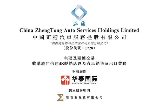 正通汽车(01728)拟斥资合共约8.16亿元收购厦门信达4S经销店以及汽车销售及出口业务