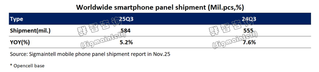 群智咨询:三季度全球智能手机面板总出货量达5.8亿片 同比增长约 5.2%