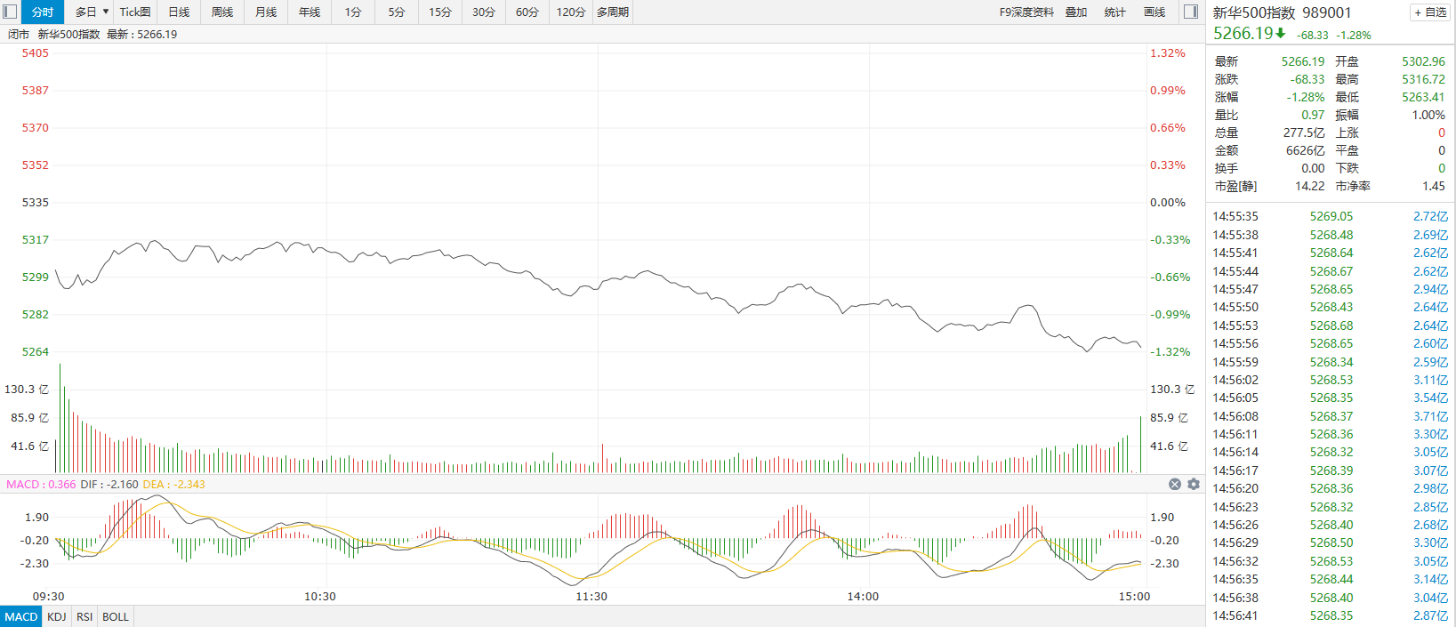 【新华500】新华500指数(989001)13日跌1.28%