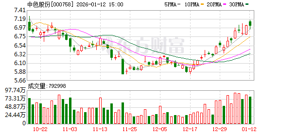 股票行情快报:中色股份(000758)1月12日主力资金净卖出6268.54万元
