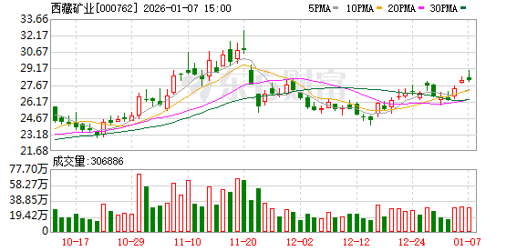 西藏矿业今年以来股价涨9.10%,近5个交易日涨7.70%,近20日涨9.68%,近60日涨14.41%。 1月7日,西藏矿业盘中上涨2.14%,截至09:55,报28.66元/股,成交2.97亿元,换手率2.02%,总市值 149.27亿元。 资金流向方面,主力资金净流出631.25万元,特大单买入2383.34万元,占比8.02%,卖出2342.96万元, 占比7.88%;大单买入6672.46万元,占比22.44%,卖出7344.10万元,占比24.70%。 资料显示,西藏矿业发展股份有限公司位于西藏自治区拉萨市柳梧新区慈觉林街道顿珠金融城金玺苑14 层至16层,成立日期1997年6月27日,上市日期1997年7月8日,公司主营业务涉及铬铁矿、锂矿的开采 及销售业务。主营业务收入构成为:铬类产品50.52%,锂类产品48.25%,其他1.23%。 西藏矿业所属申万行业为:有色金属-能源金属-锂。所属概念板块包括:固态电池、锂电池、央企改 革、中盘、融资融券等。 截至12月19日,西藏矿业股东户数10.97万,较上期减少1.42%;人均流通股4748股,较上期增加 1.44%。2025年1月-9月,西藏矿 ...