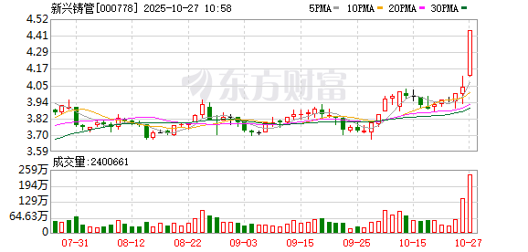 Group 1 - The core point of the article highlights that the trading volume of Xinxing Casting Pipe reached 1.019 billion yuan, marking a new high since October 10, 2024 [2] - The latest stock price increased by 9.90%, with a turnover rate of 5.96% [2] - The previous trading day's total transaction volume for the stock was 574 million yuan [2]