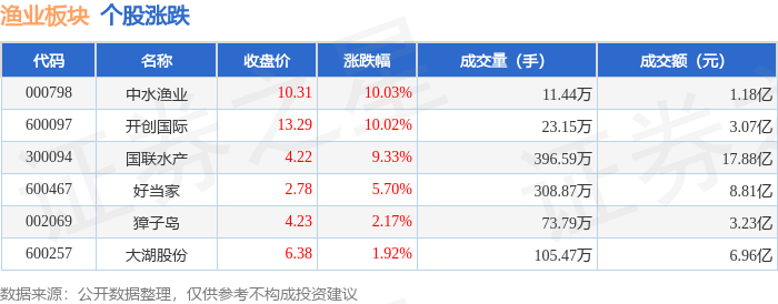 中水渔业连收3个涨停板