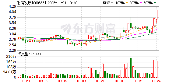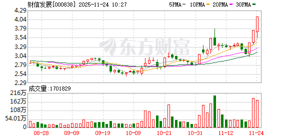 (文章来源:每日经济新闻) 每经AI快讯,11月24日,财信发展涨停走出3连板,3天累计涨幅达33.01%。 ...