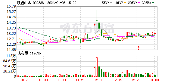 峨眉山A涨2.06%,成交额1.28亿元,主力资金净流入1248.51万元