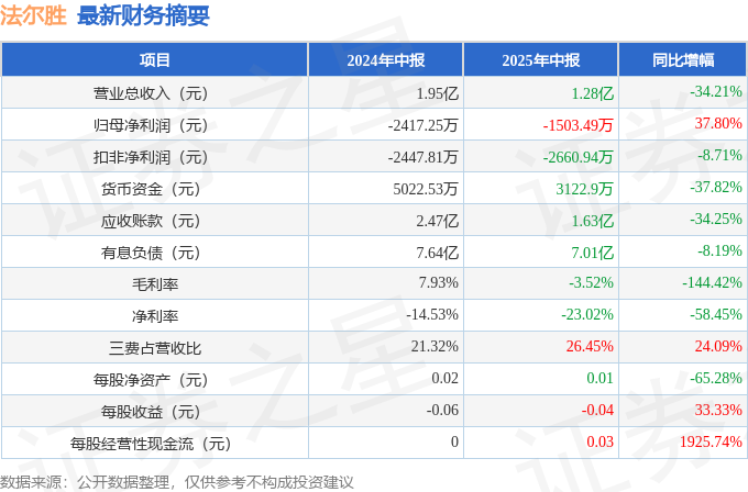 法尔胜2025年中报简析:亏损收窄,短期债务压力上升