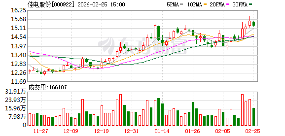 经济观察网近期佳电股份(000922)因多重概念主题受到市场关注,包括核电、军工、风电、新能源汽 车及机器人等。2月13日股价上涨0.73%,成交额达3.42亿元,换手率3.86%,总市值105.57亿元。资金 面显示近5日主力净流入2278.35万元,且融资余额连续5日增长,增幅30.63%。此外,截至2月10日股东 户数为2.78万户,较上期微增0.02%,户均持股市值高于行业平均水平。 近7个交易日(2月9日至2月13日),佳电股份股价表现活跃,区间涨幅达8.27%,振幅9.34%。2月12日单 日大涨4.87%,最高触及15.47元压力位;2月13日收盘价15.19元,当日主力资金净流入1217.68万元。技 术面显示股价在14.74元支撑位与15.47元压力位间震荡,MACD指标转强,KDJ指标进入高位区间。资 金方面,融资余额近5日累计增加0.95亿元,反映市场参与度提升。 以上内容基于公开资料整理,不构成投资建议。 股票近期走势 ...