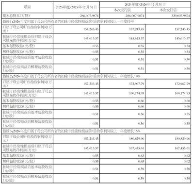 | 项目 | 2025年00/2025年12月30日 | 2026 11 12 / 3026 11 12 月 31 日 | | | --- | --- | --- | --- | | | | 本次级行前 | 本次发行用 | | 期末受貯本(万段) | 286,007,9874 | 286,007,9874 | 129,007,9874 | | 到9-1-2026年度三国工会公安所有资价班降出经济的基础设施/用的外和国政上一年增持平 | | | | | FIBET母公司所有者的字碑同 75 | 157 243,45 | 157,243,45 | 157/241.85 | | P | | | | | 如康和经常特盟益后归属于母公 | 145,613,57 | 145613.57 | 145,613,57 | | 可发在的中超级百元) | | | | | 资本国政府(元/日) | 10.55 | 11:55 | 0.54 | | 除释回股收益(元股) | 0 0.65 | 0.55 | 0.54 | | 和除补给家都被后最本回股政治 | 50.51 | 10.51 | 0.50 | | (元/2) | | | | ...