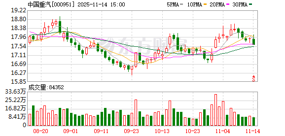 Core Viewpoint - China National Heavy Duty Truck Group Co., Ltd. (China National Heavy Duty Truck) has experienced a decline in stock price recently, with a year-to-date increase of 6.31% but a drop of 3.50% in the last five trading days [2][3]. Financial Performance - For the period from January to September 2025, China National Heavy Duty Truck achieved operating revenue of 40.49 billion yuan, representing a year-on-year growth of 20.55%. The net profit attributable to shareholders was 1.05 billion yuan, up 12.45% year-on-year [2]. - The company has distributed a total of 4.646 billion yuan in dividends since its A-share listing, with 1.818 billion yuan distributed over the past three years [3]. Stock Market Activity - As of November 18, the stock price was 17.29 yuan per share, with a market capitalization of 20.313 billion yuan. The trading volume was 1.03 billion yuan, with a turnover rate of 0.50% [1]. - The net outflow of main funds was 6.7953 million yuan, with large orders showing a buy of 14.472 million yuan and a sell of 18.0347 million yuan [1]. Shareholder Structure - As of September 30, 2025, the number of shareholders increased to 43,200, up 21.18% from the previous period. The average circulating shares per person decreased by 17.48% to 27,192 shares [2][3]. - The top circulating shareholders include various funds, with notable changes in holdings among them [3].