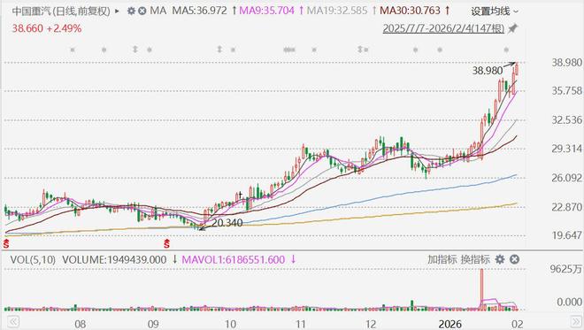 港股异动丨中国重汽大涨超7%创新高 2025年重卡销量突破30万 登顶全球重卡之巅