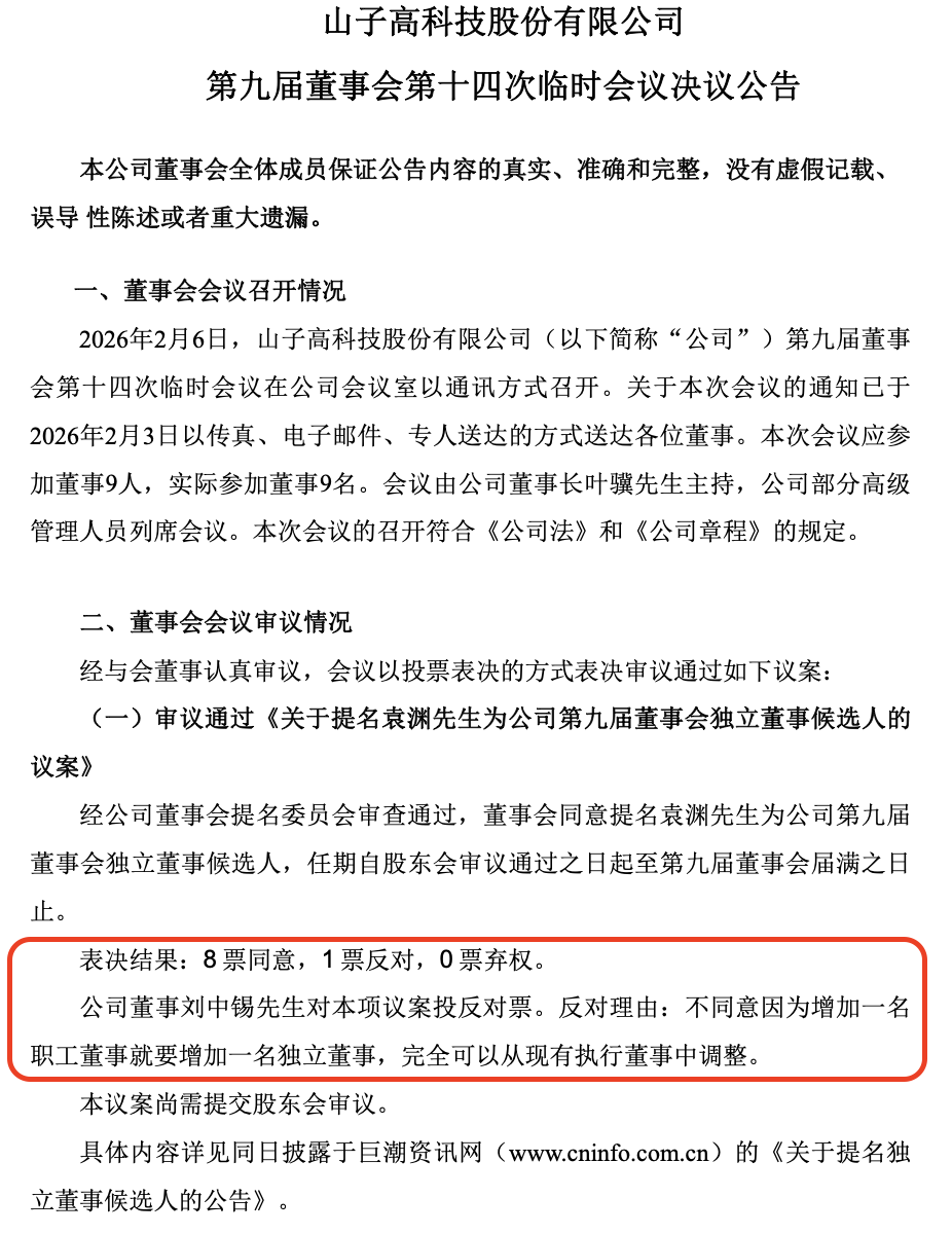 山子高科独董提名遭反对,“一增一补”引治理争议