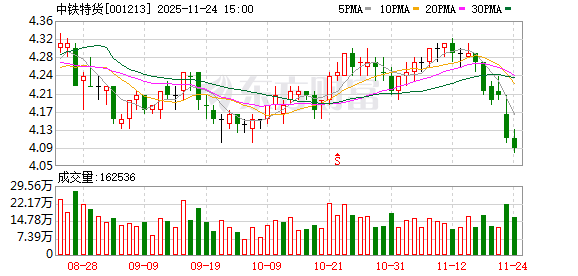 每经头条(nbdtoutiao)——大鹏工业战略配售"肥"了自家人!认购价9元,上市首日涨到118元,实控 人和亲哥哥凭配售一天浮盈2492万元 (记者 曾健辉) 截至发稿,中铁特货市值为182亿元。 每经AI快讯,中铁特货(SZ 001213,收盘价:4.09元)11月24日晚间发布公告称,公司第三届第五次 董事会会议于2025年11月24日以通讯会议的方式召开。会议审议了《关于提请召开中铁特货物流股份有 限公司2025年第三次临时股东会的议案》等文件。 2025年1至6月份,中铁特货的营业收入构成为:交通运输业占比100.0%。 ...