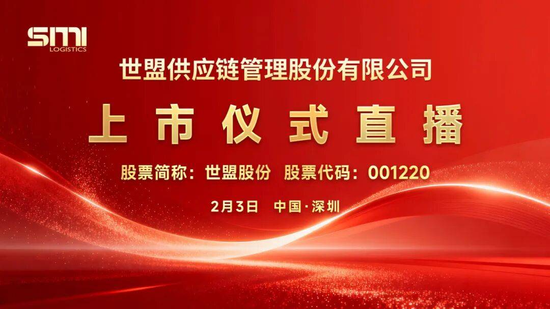 活动简介 世盟供应链管理股份有限公司成立于2010年11月25日,专注于为跨国制造企业提供定制化、一体化、嵌入式的供应链物流解决方案。世盟股份将于2026年 2月3日登陆深交所上市交易,全景路演将对上市仪式全程直播,敬请关注。 来源:全景财经 世盟股份新股发行上市仪式 日 09:00-09:30 世盟股份新股发行上市仪式于2026年2月3日09:00-09:30举行,全景路演全程直播,敬请期待。 活动议程 第一环节:贵宾致辞 第二环节:签署《证券上市协议》 第三环节:赠送纪念品 第四环节:敲响开市宝钟 ...