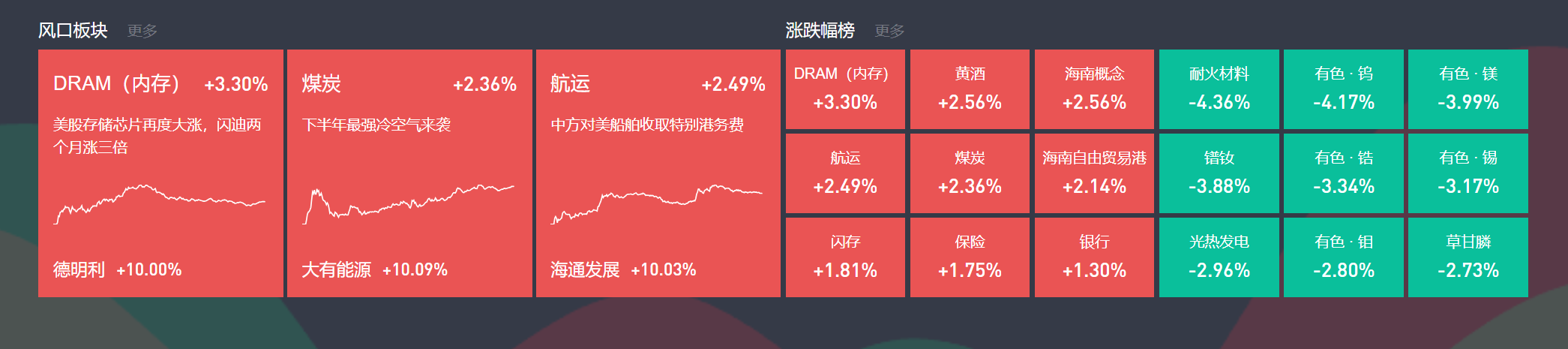 10月16日主题复盘 | 存储板块反弹,煤炭、航运受资金关注