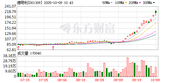 德明利股价再创历史新高,该股近期呈不断突破新高之势,近一个月累计有11个交易日股价刷新历史纪 录。截至09:42,该股目前上涨2.11%,股价报209.00元,成交895.81万股,成交金额19.19亿元,换手率 5.59%,该股最新A股总市值达474.19亿元,该股A股流通市值335.19亿元。 公司发布的半年报数据显示,上半年公司共实现营业收入41.09亿元,同比增长88.83%,实现净利 润-1.18亿元,同比下降130.43%,基本每股收益为-0.7400元。(数据宝) 证券时报·数据宝统计显示,德明利所属的电子行业,目前整体涨幅为2.83%,行业内,目前股价上涨的 有387只,涨停的有通富微电、雅克科技等4只。股价下跌的有90只,跌幅居前的有波长光电、*ST宇 顺、东尼电子等,跌幅分别为8.35%、4.96%、4.29%。 (文章来源:证券时报网) 两融数据显示,该股最新(9月30日)两融余额为13.18亿元,其中,融资余额为13.14亿元,近10日减少 2.86亿元,环比下降17.90%。 ...