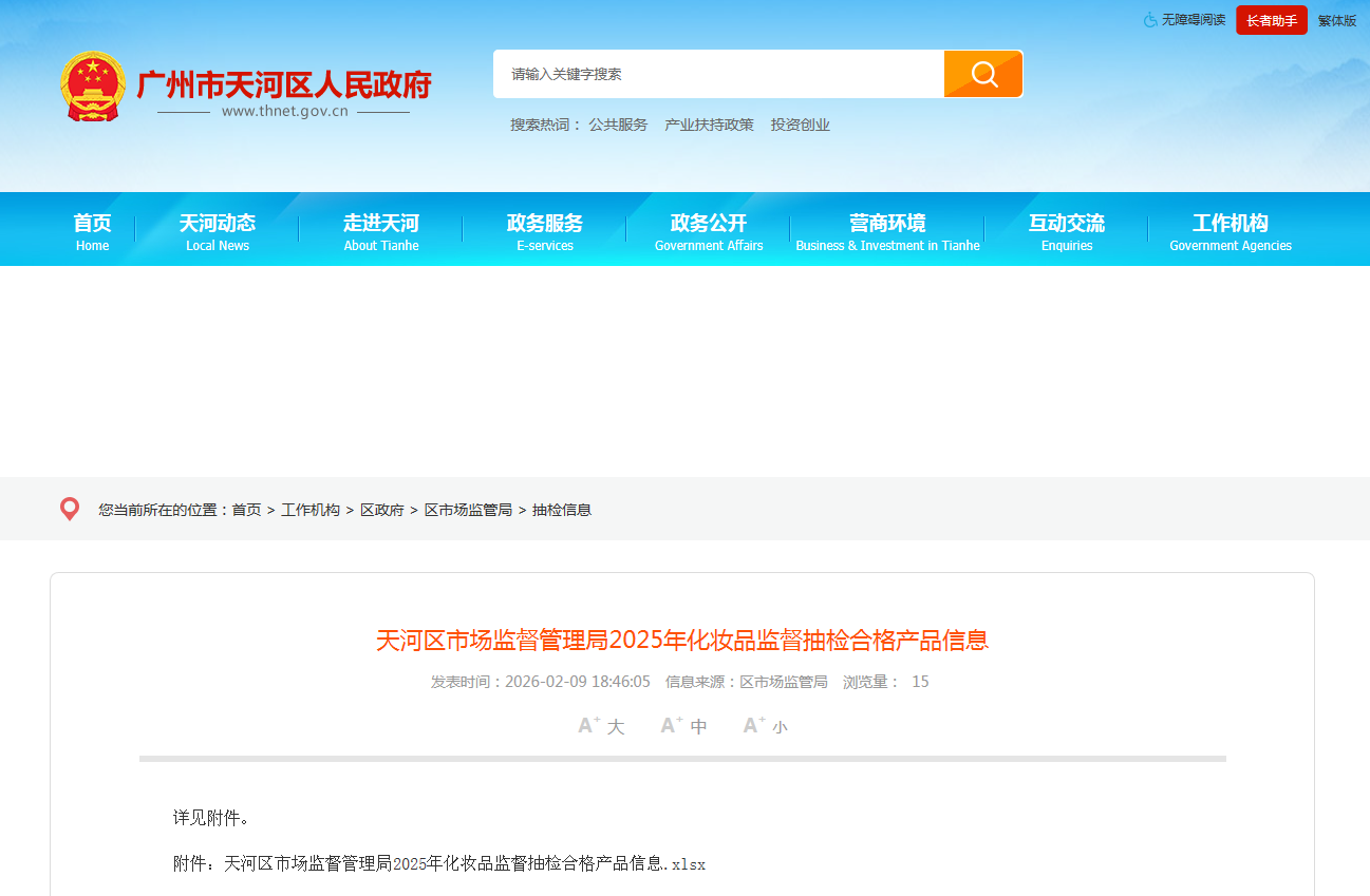 广州市天河区市场监督管理局2025年化妆品监督抽检合格产品信息