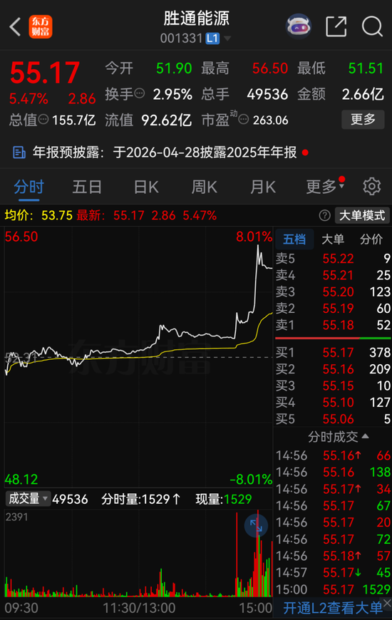 胜通能源股价涨5.08%,国联基金旗下1只基金重仓,持有5.93万股浮盈赚取16.78万元