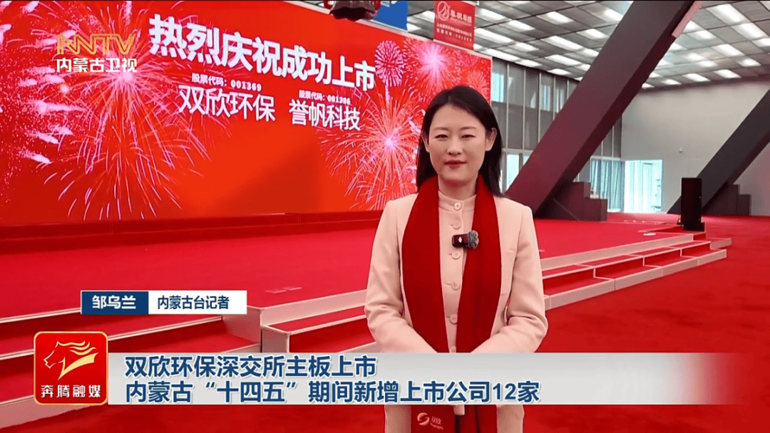 内蒙古双欣环保材料股份有限公司董事长 张飞雄此次登陆深交所主板,双欣环保将借助资本市场的平台,进一步加大研发投入和科技创新,未来,深化 全产业链布局,为我国汽车、显示面板等战略性新兴产业提供更安全、更高效的新材料解决方案,助力新质生产力的发展。 自治区党委金融办副主任 地方金融管理局局长 李国俭 2025年我们新增了四只股票,这个在全国也排在前十位,千亿市值的这个企业占比达到10%,这个 在全国也是排在前十位的。有82%的上市公司进行了分红,分红达到330亿元,这个在全国也是排在前十位的。上市公司已经成为了我们自治区经济高质 量发展的主力军。 内容来源:《内蒙古新闻联播》微信公众号 12月30日,内蒙古双欣环保材料股份有限公司在深圳证券交易所主板正式挂牌上市。"十四五"收官之际,内蒙古资本市场交出亮眼答卷,五年新增上市公 司12家,实现连续五年上市"不断档"。 邹乌兰 内蒙古台记者这里是深圳证券交易所。今天上午,来自内蒙古鄂尔多斯的双欣环保材料股份有限公司在深交所主板鸣钟上市。双欣环保是国内可 降解新材料与高端功能性膜材料领域的领军者。它的成功上市,标志着我国在攻克关键材料"卡脖子"技术、实现国产化替代的道路 ...