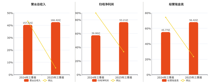 北京商报讯(记者 丁宁)10月28日晚间,新和成(002001)发布2025年三季报显示,公司前三季度实 现营业收入166.42亿元,同比增长5.45%;归属净利润53.21亿元,同比增长33.37%。 ...
